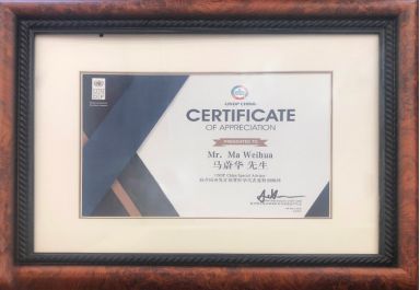 Certificate of Appreciation by UNDP China