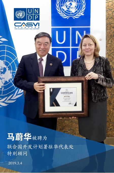 On March 4, United Nations Development Programme (UNDP) China held a ceremony to formally appreciate Mr. Ma Weihua, the Chairman of the Board of CGPI and Former President of China Merchants Bank, as UNDP China Special Advisor.